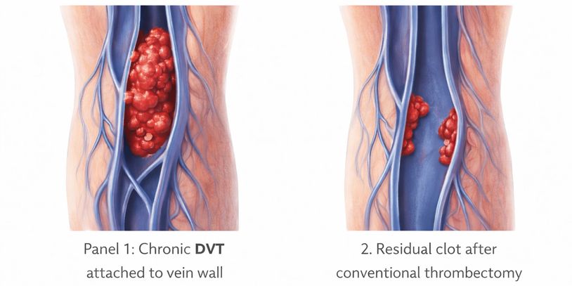 In a preclinical porcine thrombectomy model, ClotHound achieved 96% removal of chronic, wall-adherent thrombus with zero distal emboli.